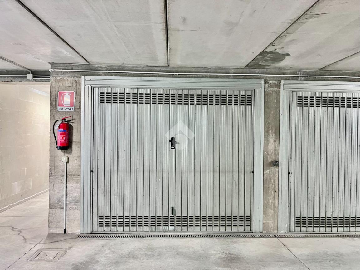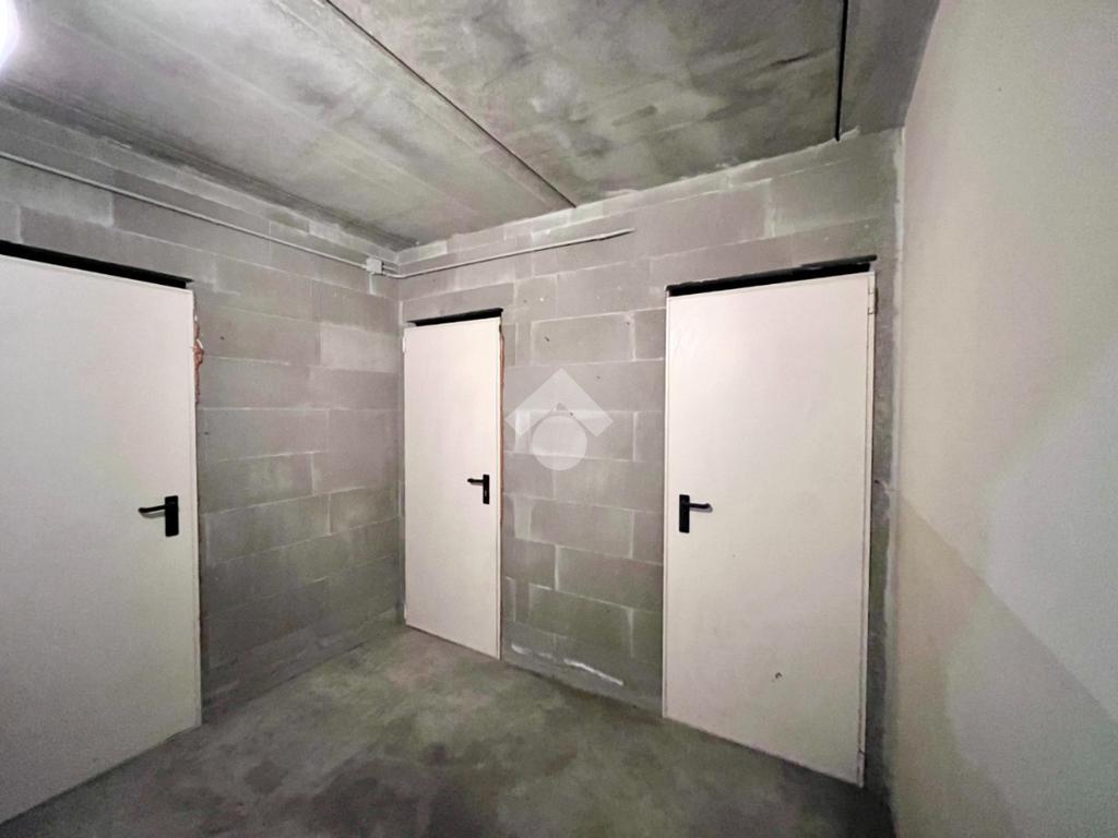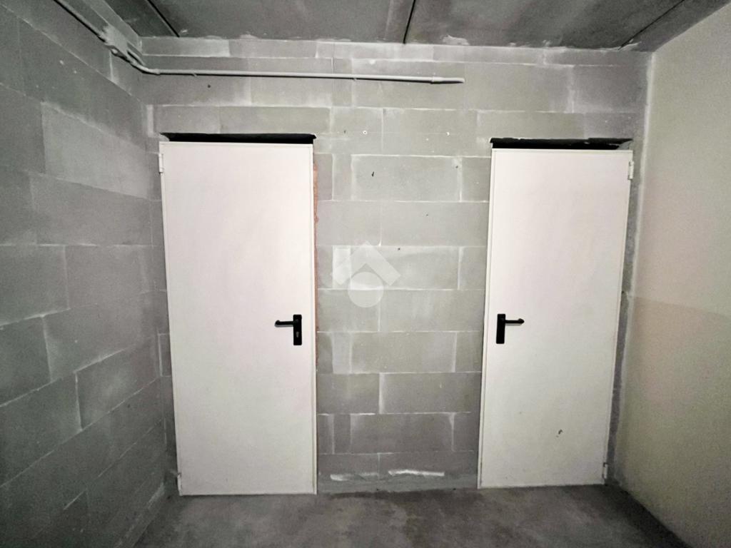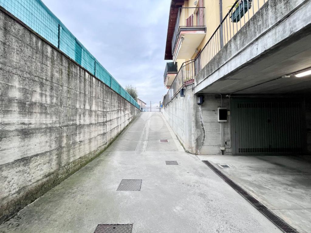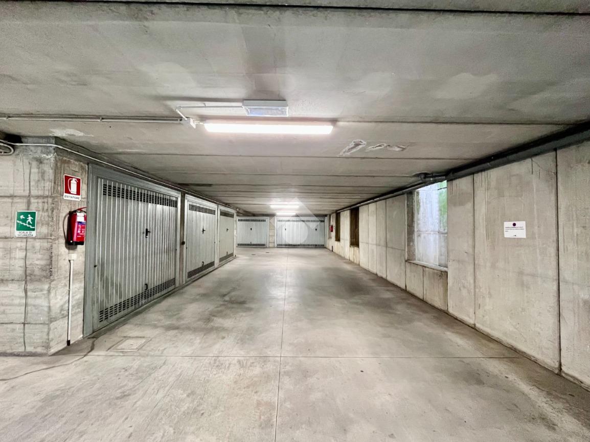 Dalla scala condominiale esterna, si accede al piano interrato, dove sono presenti box auto singolo e cantina di pertinenza, collegati tramite corsello comune.